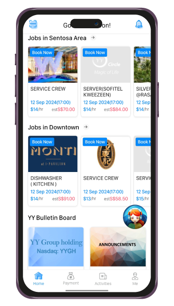 By connecting our customers with a growing online community of workers, YY Circle specialises in identifying pre-qualified workers seeking both part-time and full-time employment. Whether for a one-day event or ongoing support, employers can easily book and manage their staffing needs through the application, increasing control and saving time and resources.